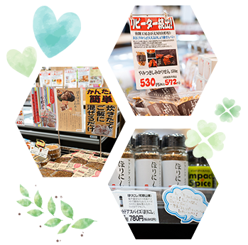 食卓を楽しくする調味料や焼き菓子などオススメ食品を取り揃え、47都道府県の味を発掘できる食の宝庫のようになっております。